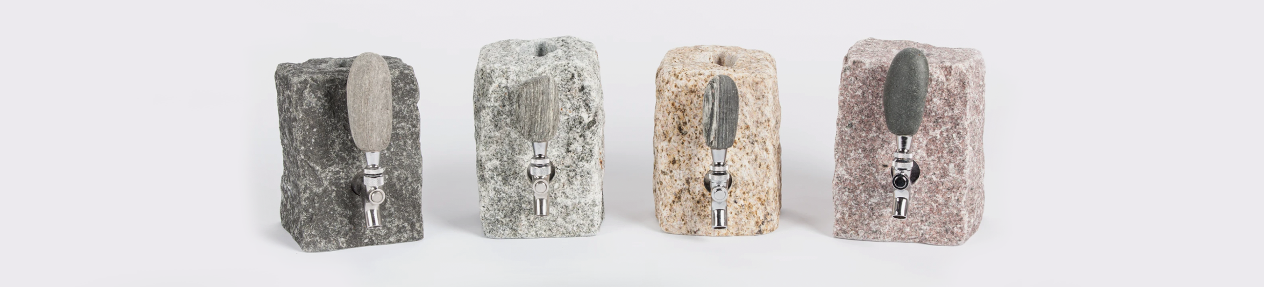 Hours are spent combing the shore looking for the perfect stones to be transformed into vases candle holders drink dispensers bottle balancers and many other products.
